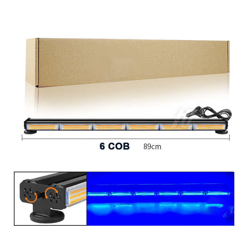 Стробоскоп мигалка LED балка на дах авто, на магнітах, 89СМ/COB1-6 / СИНІЙ 120Вт, прикурювач12-24В